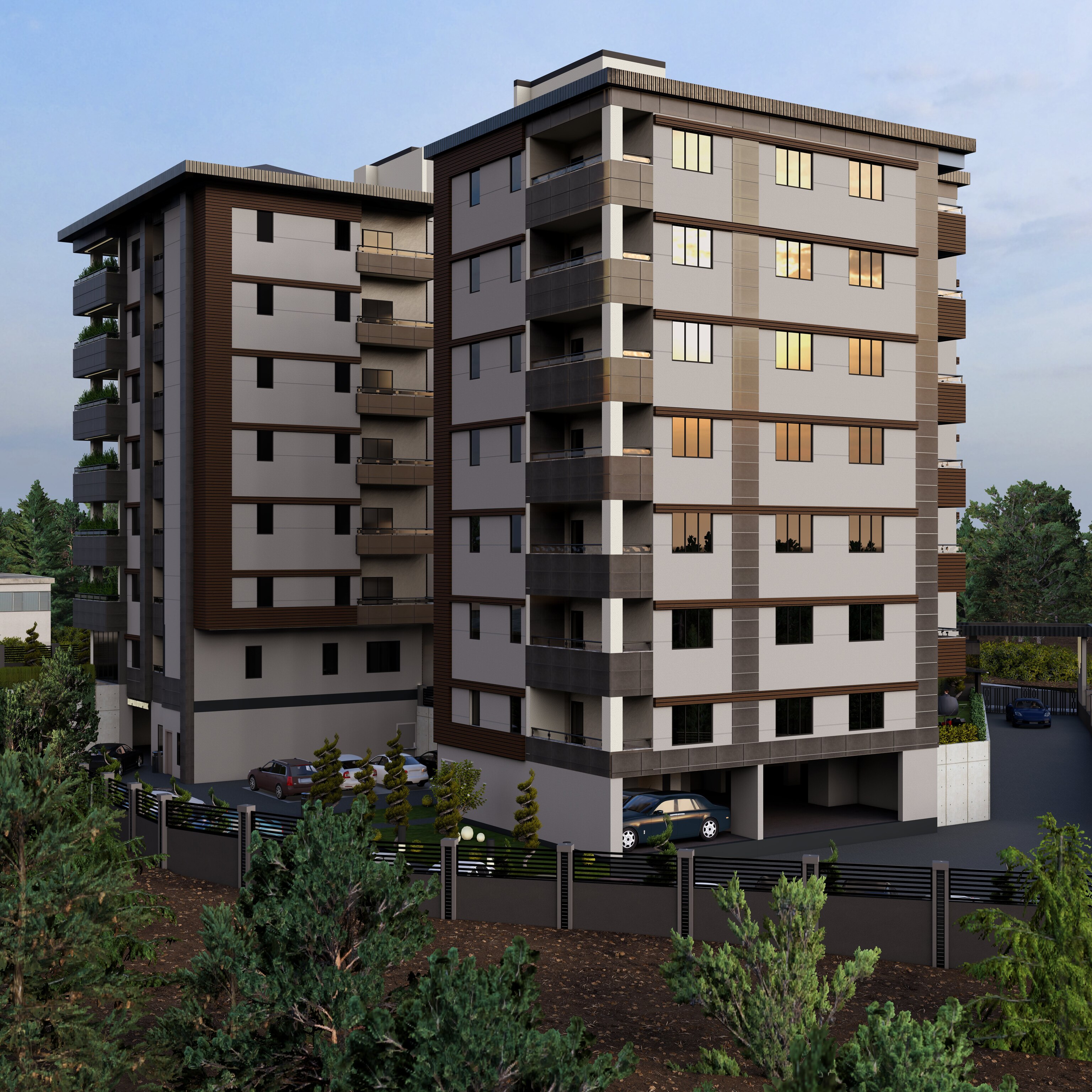 Cephe yüzeylerinde 60x120 cm ölçülerinde antrasit ve beyaz tonlarında seramik kaplama kullanılmıştır. Yapının köşe bölümleri ile bazı balkon parapetlerinde ise ahşap desenli poliüretan köpük malzeme tercih edilerek modern ve sıcak bir görünüm elde edilmiştir.