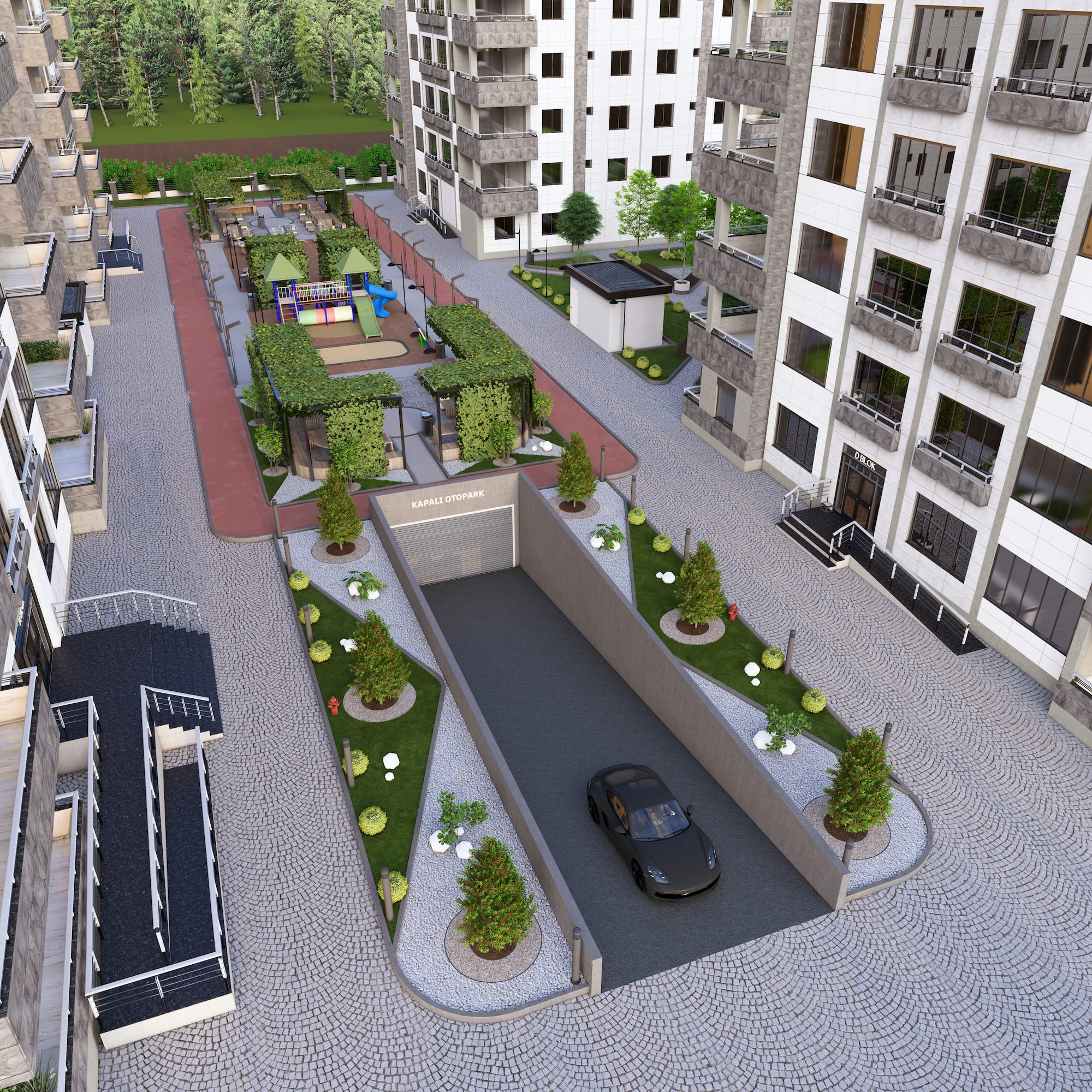 Cephe yüzeylerinde 60x120 cm ölçülerinde Arena Gri, Arena Beyaz , Arena Antrasit seramik kaplama kullanılmıştır. Yapının tamamı mekanik cephe ile kaplanmıştır. Dış bahçe duvarı 50cm parapet + 100cm metal cnc kesim korkuluk ile çevrelenmiştir.